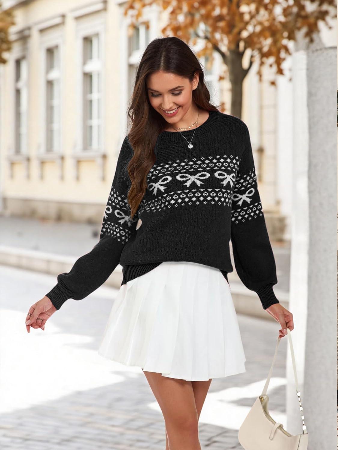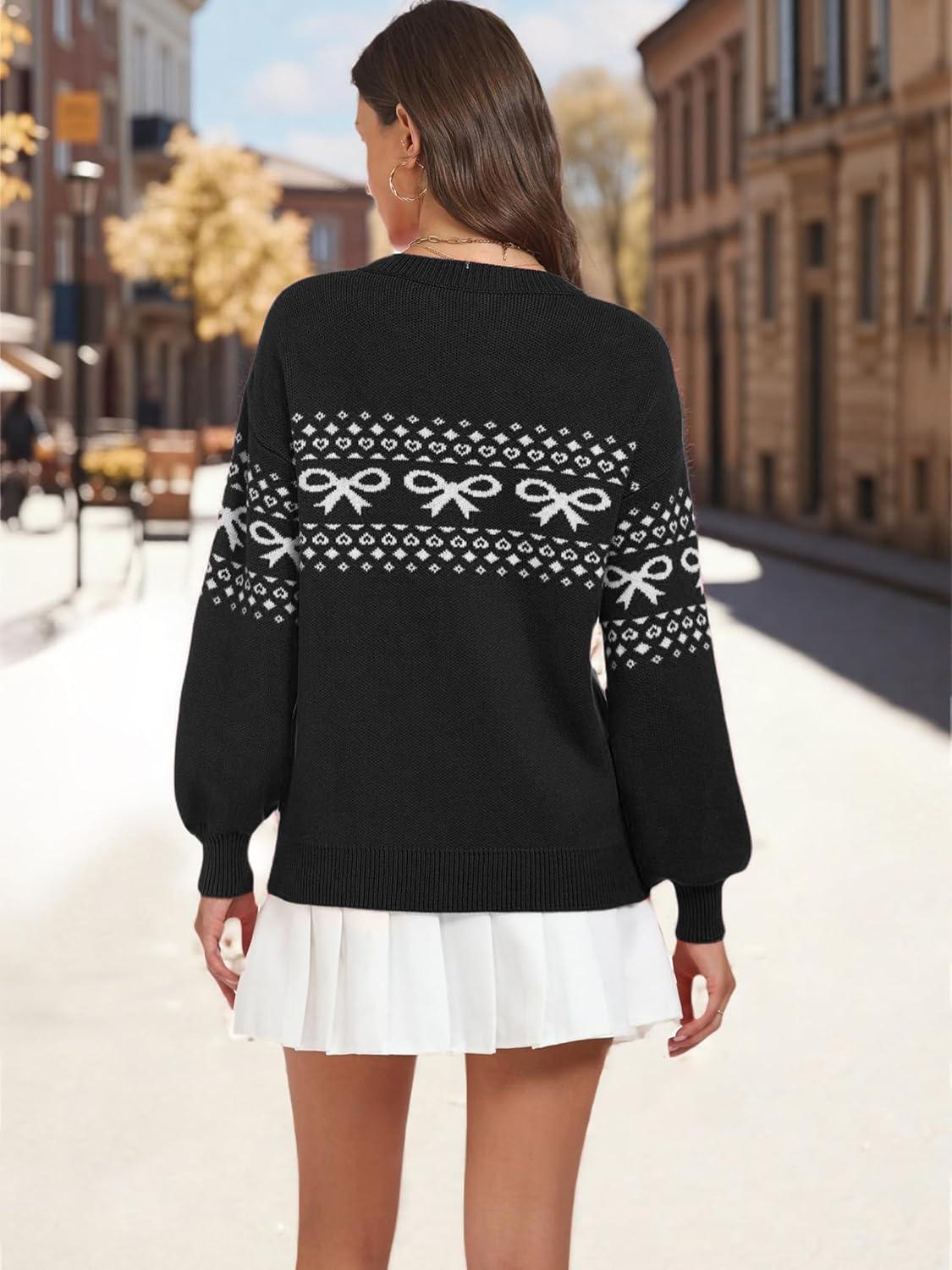 image:imageECOWISH Bow Sweater Women Valentine Casual Long Sleeve Knit Tops Crew Neck Jumper Pullover Oversized Outfit Fall Winter 2026Black