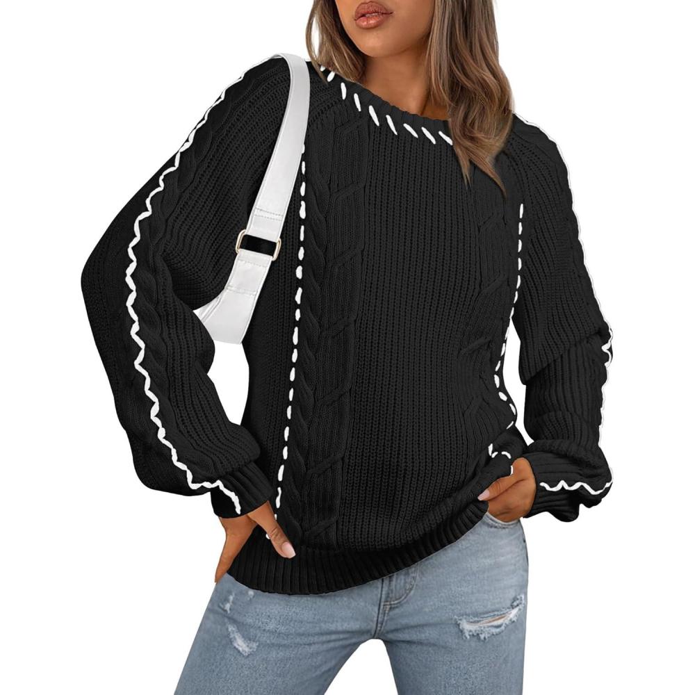 Be the first to review “ECOWISH Oversized Sweaters for Women Fall Winter Cable Knit Chunky Color Block Tops Jumper Long Sleeve Crewneck Pullover 2026(Black)”