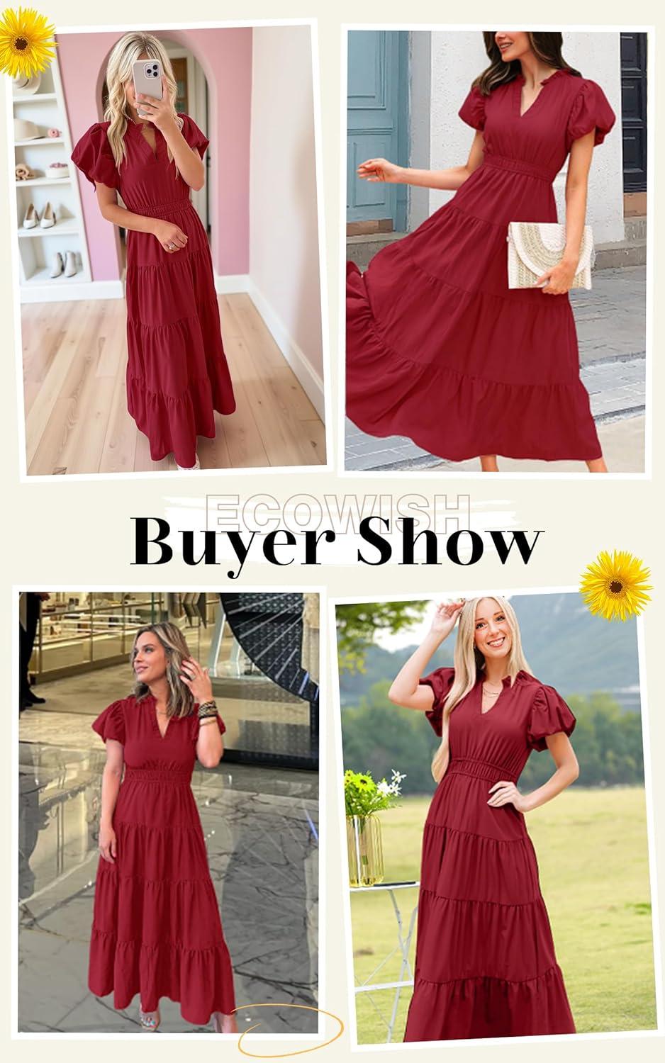 Don’t wait, get up to 50% off on ECOWISH Short Sleeve Womens Dress Summer Lapel Collar Button Front Casual A-Line Maxi Midi Shirt Dresses with Pockets(25red) during our end-of-season sale event.
