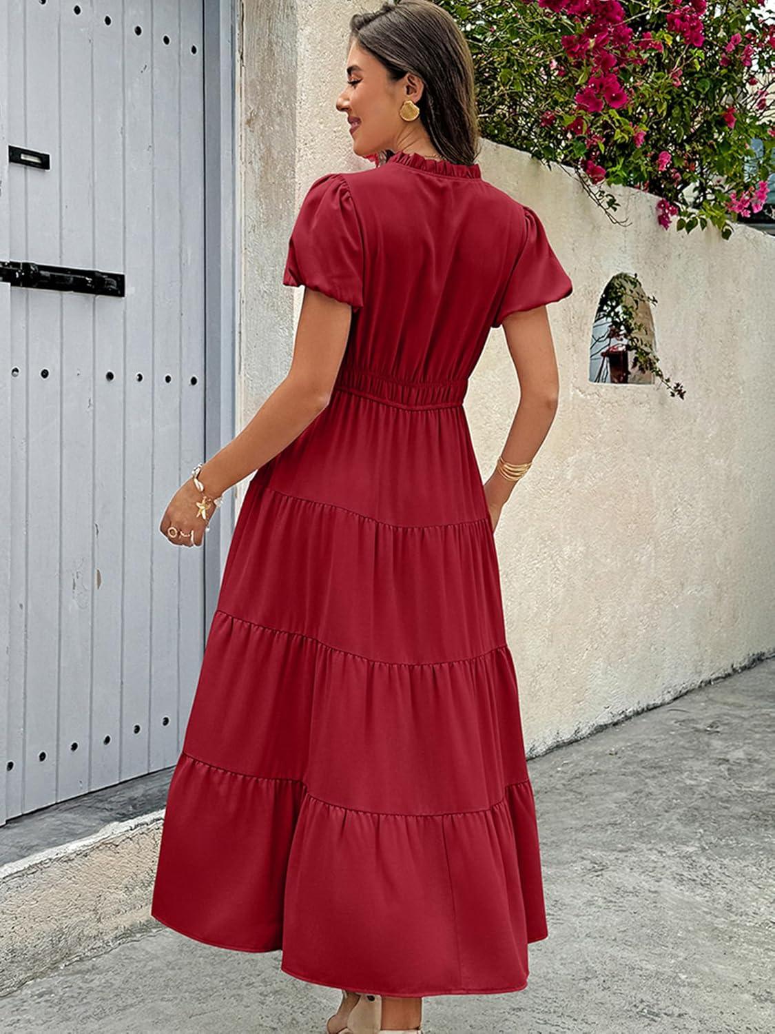 ECOWISH Short Sleeve Womens Dress Summer Lapel Collar Button Front Casual A-Line Maxi Midi Shirt Dresses with Pockets(25red)