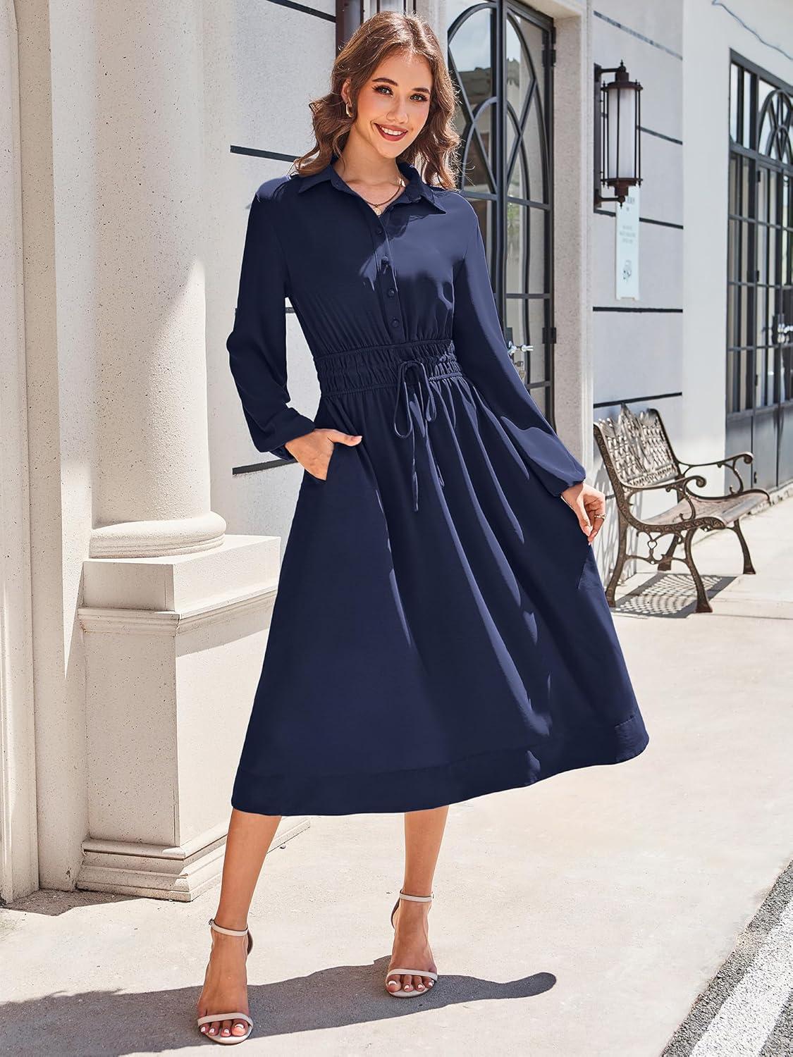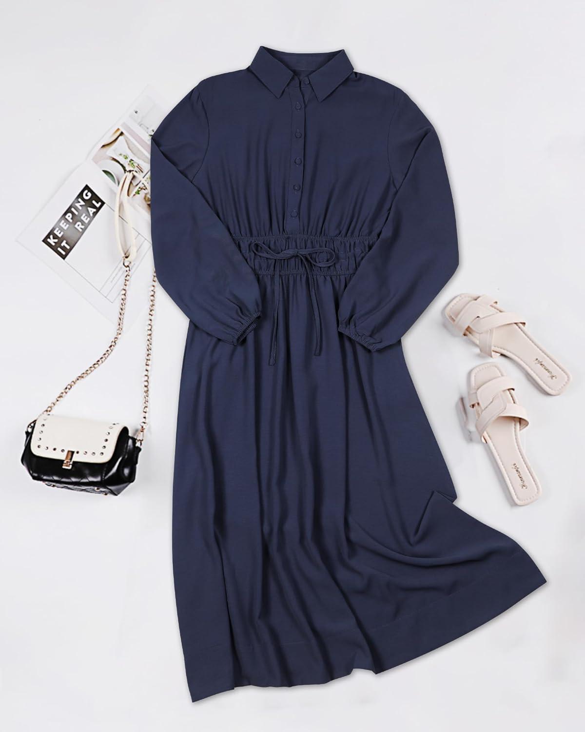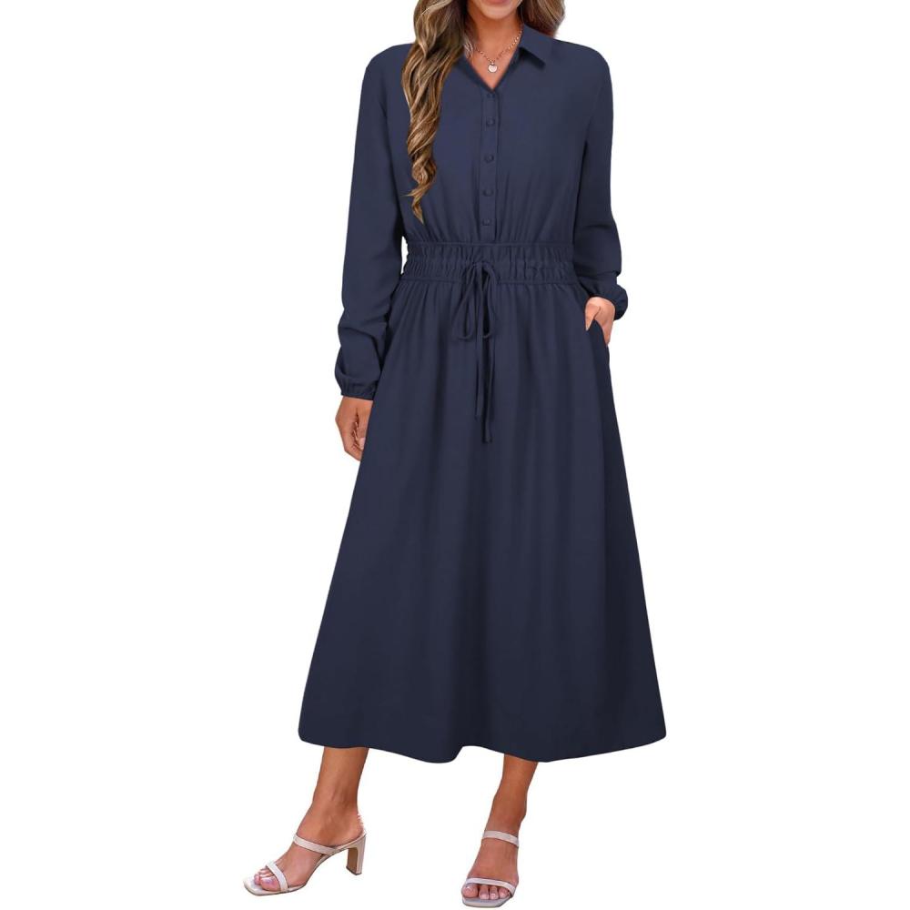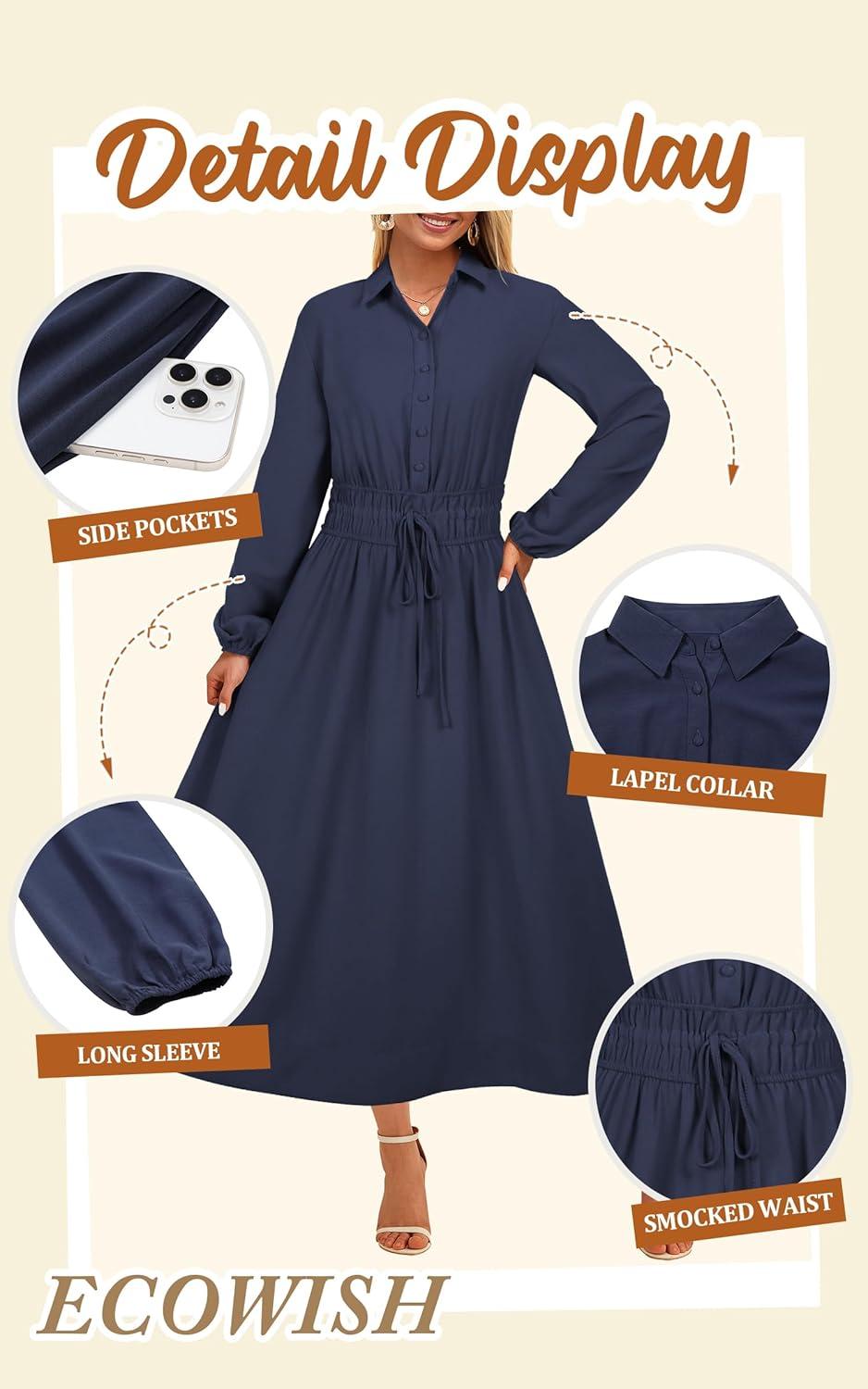 Be the first to review “ECOWISH Short Sleeve Womens Dress Summer Lapel Collar Button Front Casual A-Line Maxi Midi Shirt Dresses with Pockets(63navy Blue)”