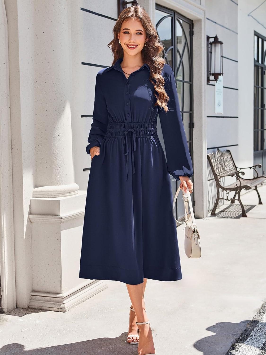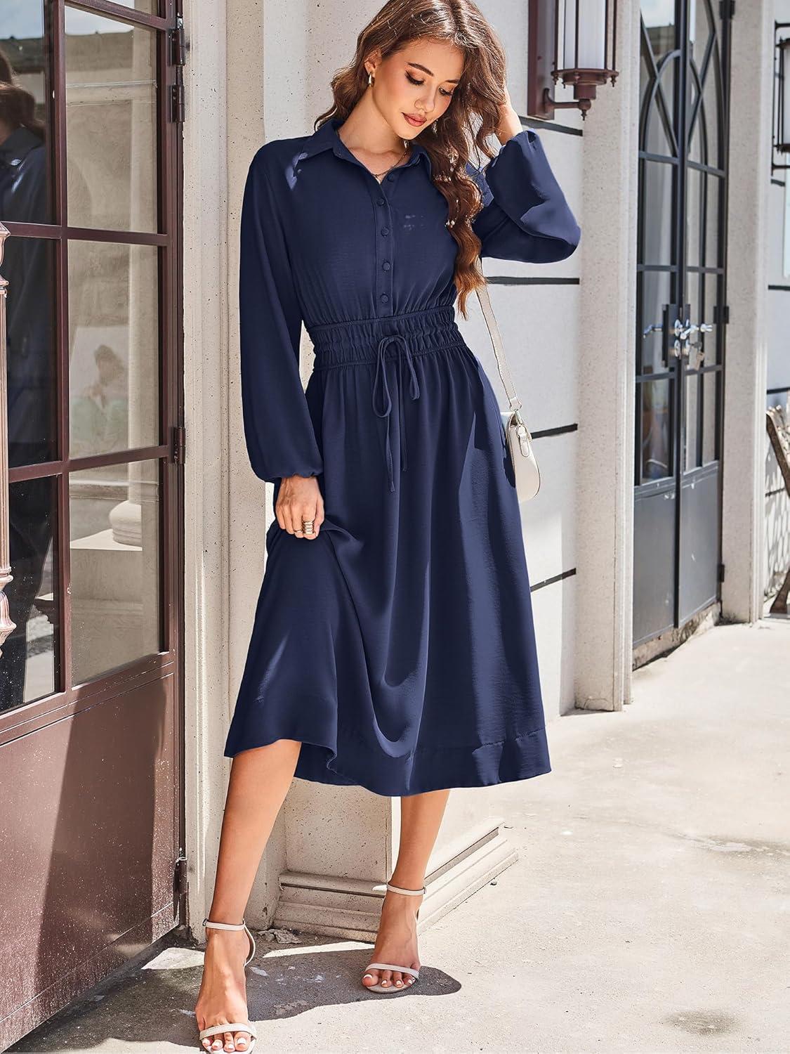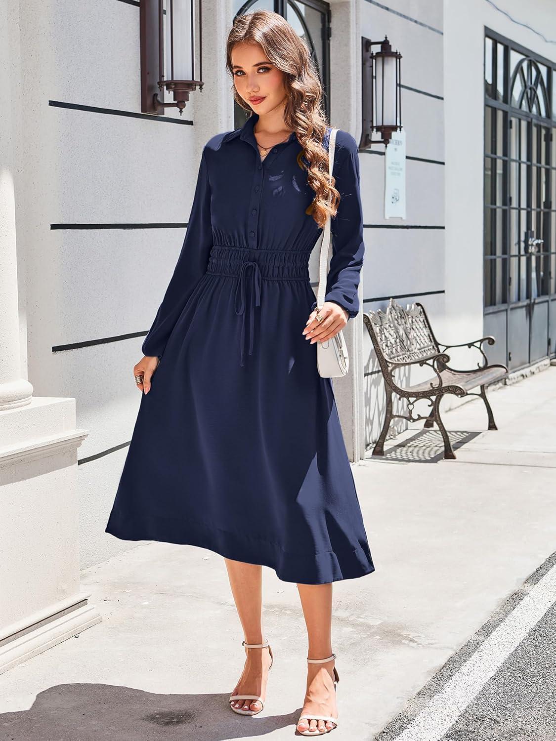 Be the first to review “ECOWISH Short Sleeve Womens Dress Summer Lapel Collar Button Front Casual A-Line Maxi Midi Shirt Dresses with Pockets(63navy Blue)”