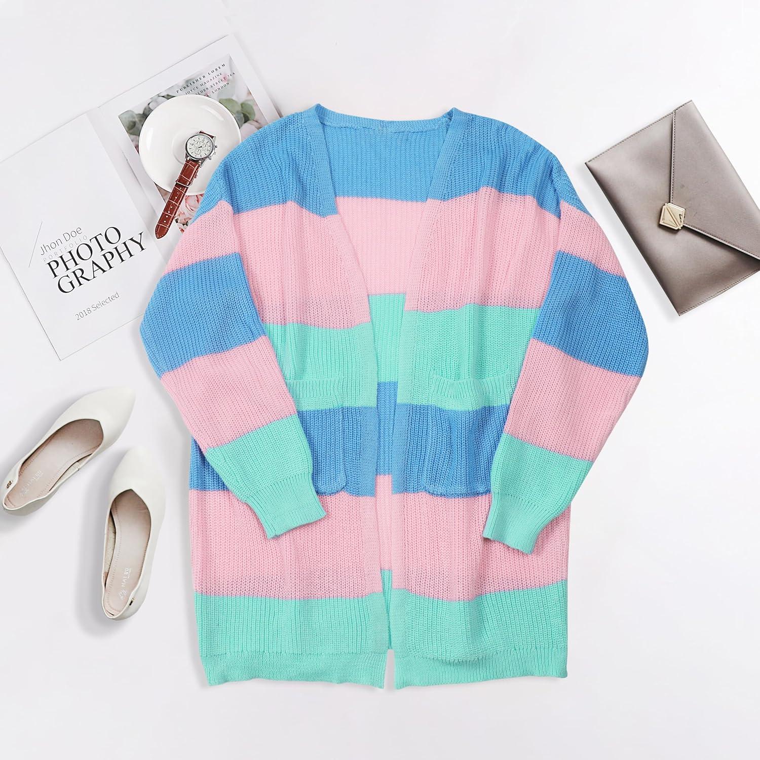 ECOWISH Women Cardigan Sweaters Long Floral Striped Winter Fall Long Sleeve Open Front Cozy Knitted Daisy Fuzzy Coats Outwear(L-996 Pink)