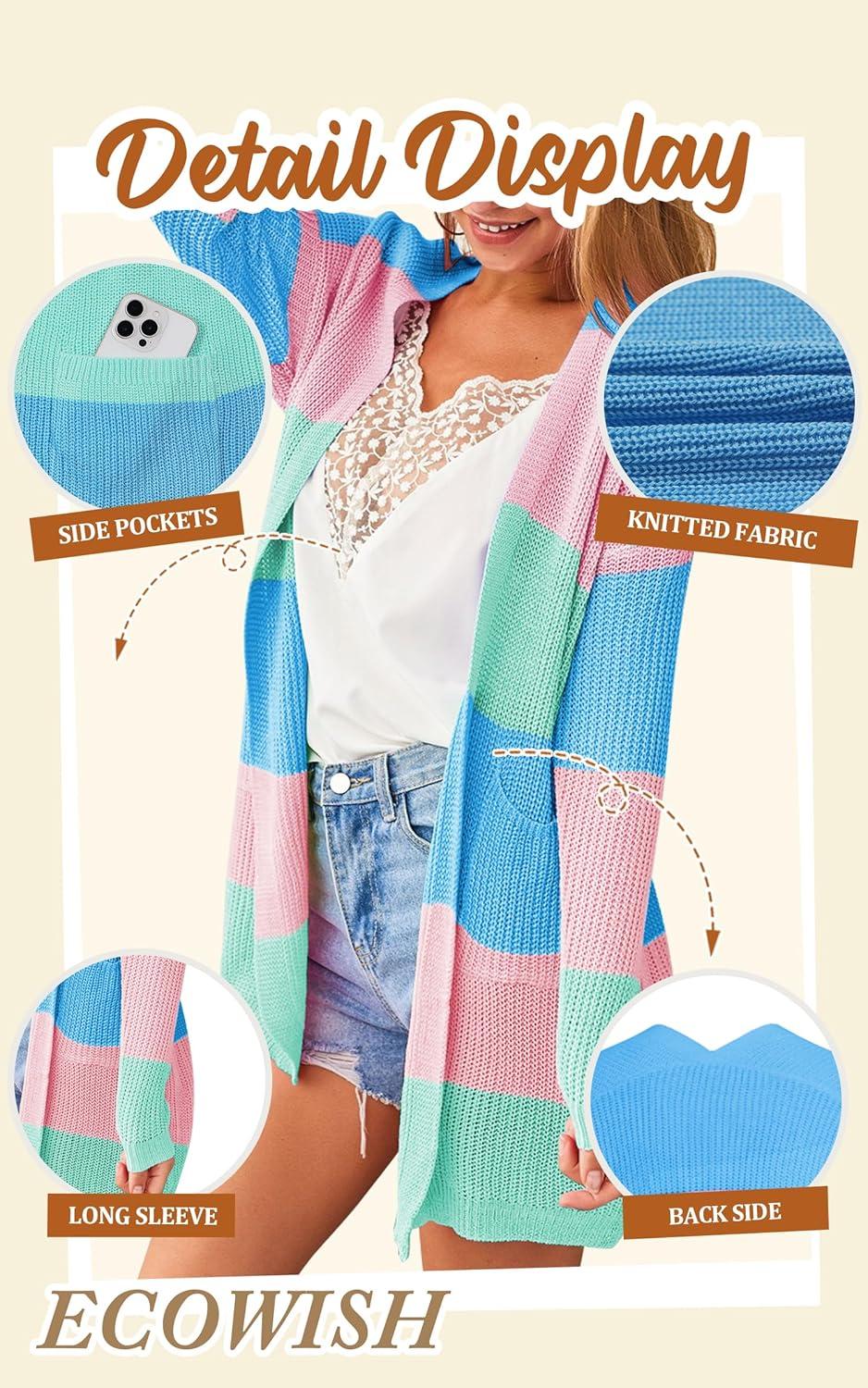 imageECOWISH Women Cardigan Sweaters Long Floral Striped Winter Fall Long Sleeve Open Front Cozy Knitted Daisy Fuzzy Coats OutwearL996 Pink