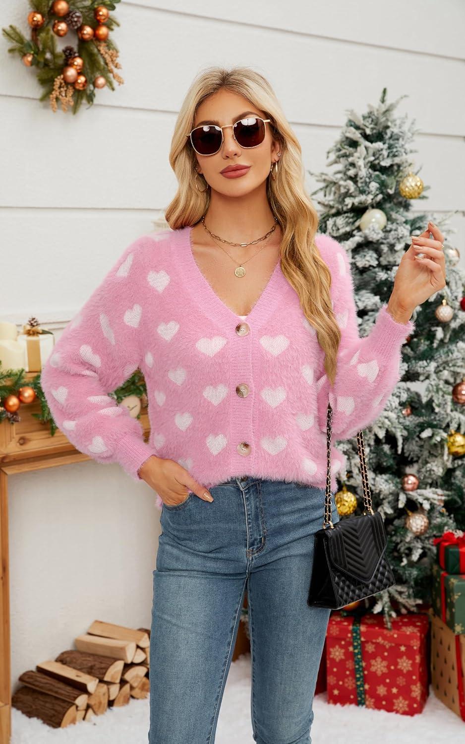 Be the first to review “ECOWISH Women Floral Cropped Cardigan: Fall Long Sleeve Button Down Fuzzy Heart Print Knit Sweaters Casual Y2k Outerwear(407 Pink)”
