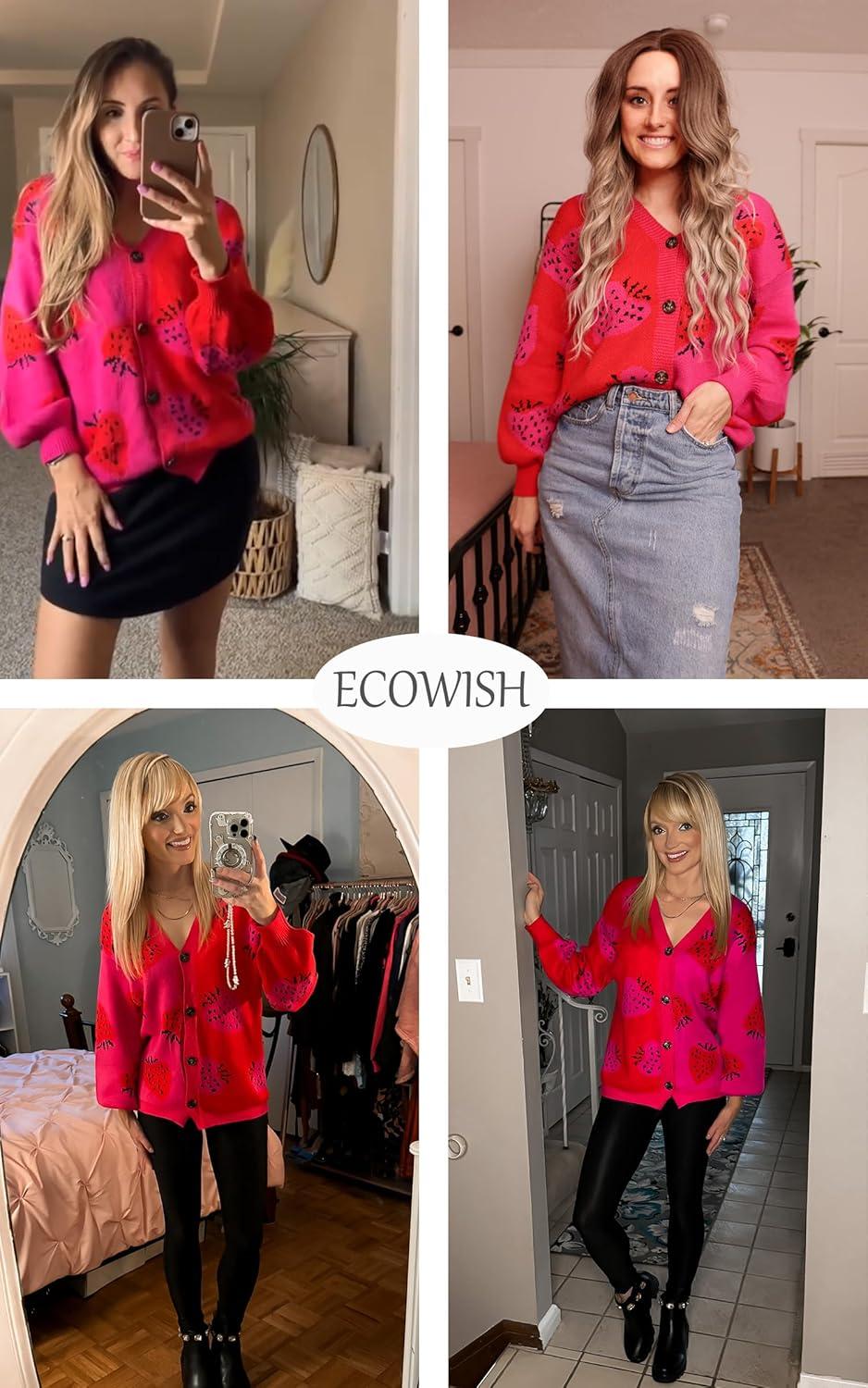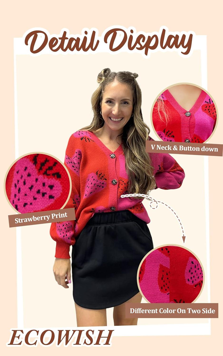 Be the first to review “ECOWISH Women Floral Cropped Cardigan: Fall Long Sleeve Button Down Fuzzy Heart Print Knit Sweaters Casual Y2k Outerwear(Strawberry(red))”