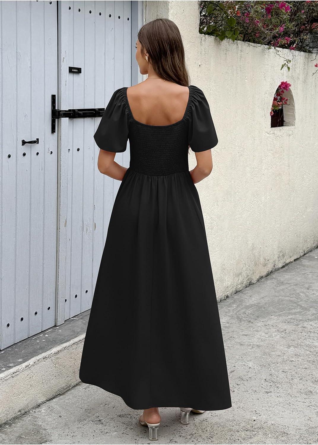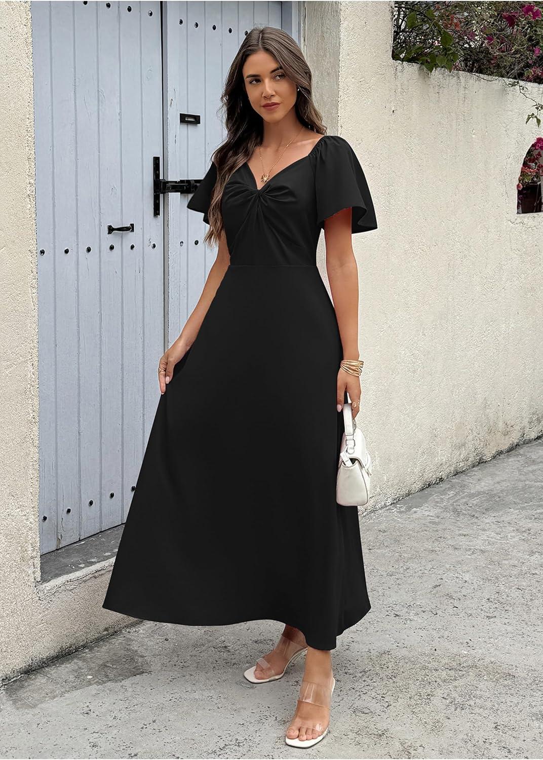 image:imageECOWISH Womens Summer Maxi Dresses 2026 Casual Flutter Short Sleeve Twist Front Long Flowy Wedding Guest Dress with Pockets482black