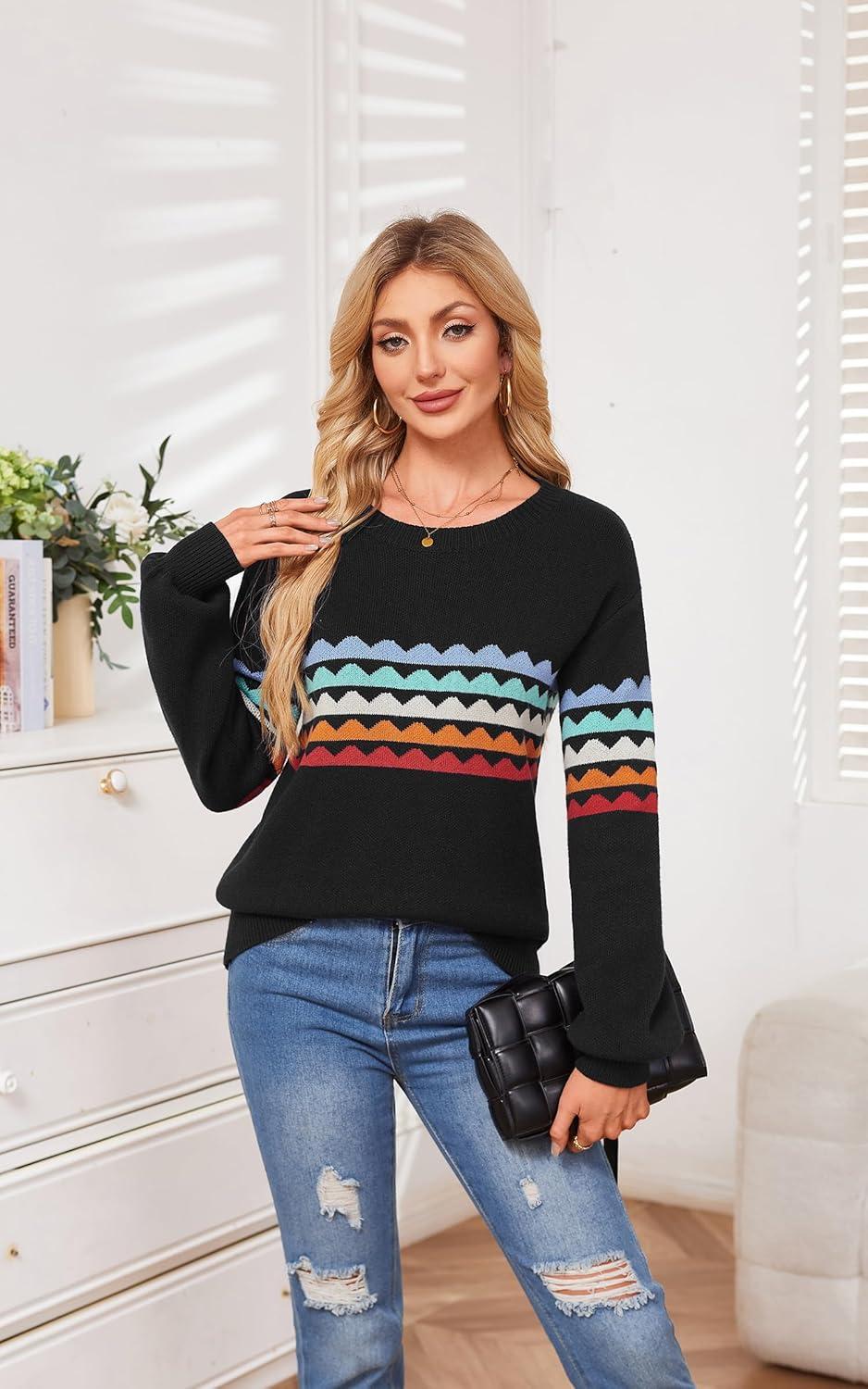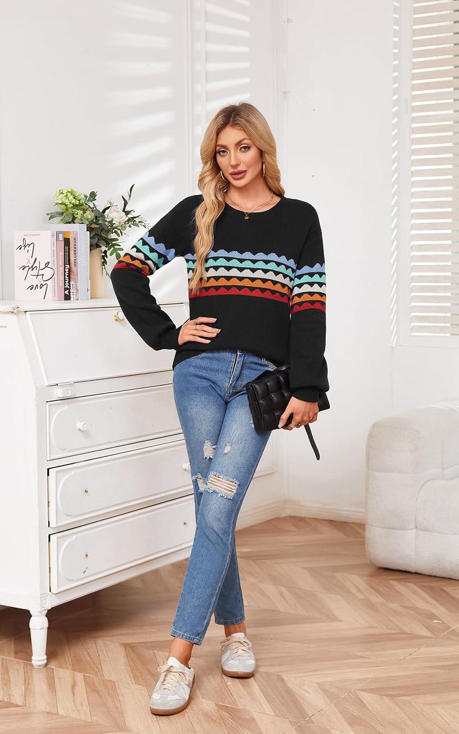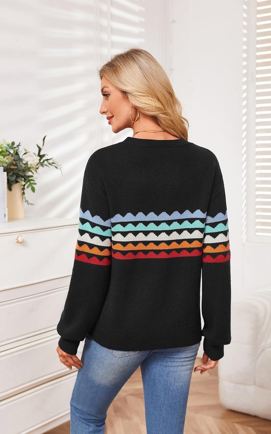 Be the first to review “ECOWISH Women’s Sweater Rainbow Colorful Striped Sweaters Long Sleeve Crew Neck Color Block Casual Pullover Blouse Tops(3474 Black)”